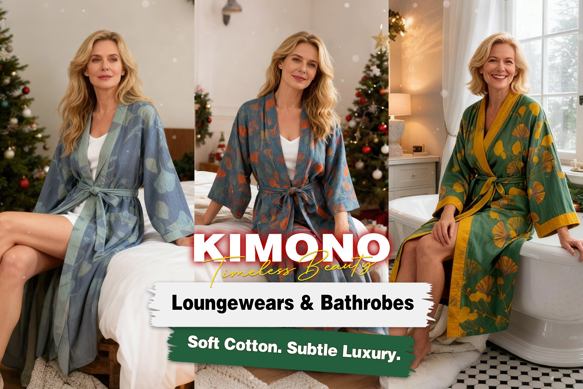 Ginkgo Biloba Cotton Gauze Kimono Robe