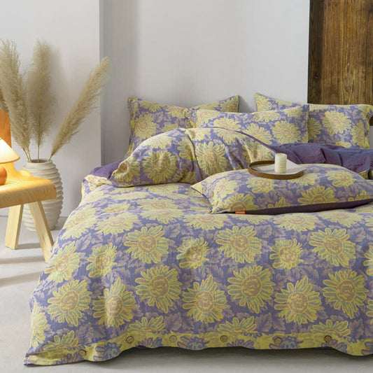 Sunflower Cotton Gauze Reversible Bedding Set(4PCS)