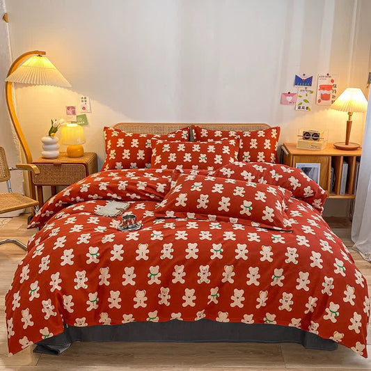 Brushed Pure Cotton Gingerbread Bear Bedding Set(4PCS)