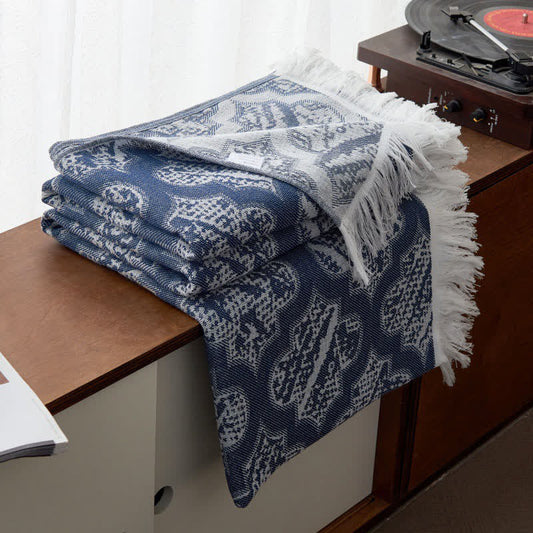 Floral Leaf Cotton Gauze Tassel Reversible Blanket