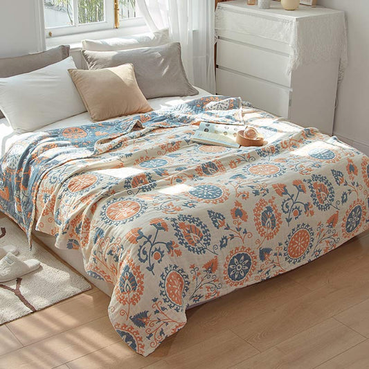 Bluebell Flower Cotton Gauze Reversible Quilt