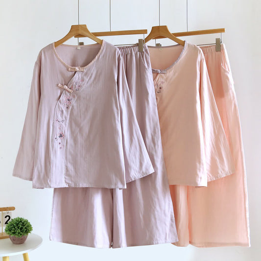 Ownkoti Oriental Retro Jacquard Cotton Gauze Loungewear