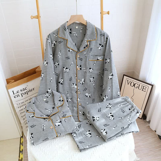 Colorblock Double Layer Cotton Gauze Pajama Set