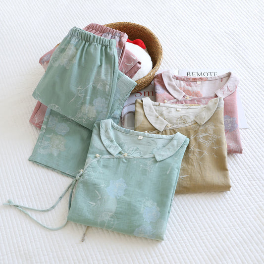Vintage Floral Cotton Gauze Jacquard Nightwear Set