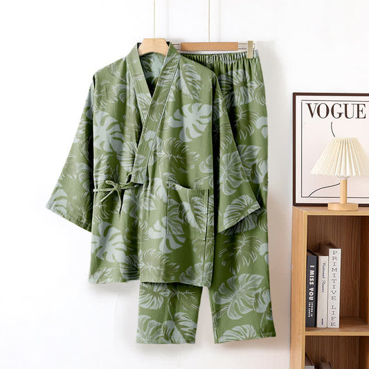 Ginkgo Leaf Oriental Tassel Cotton Pajamas