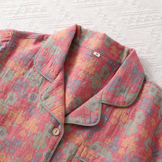 Cotton Gauze V-neck Retro Summer Pajama Set