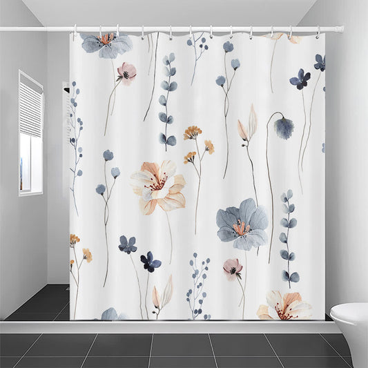 Luxurious Botanical Flower Waterproof Shower Curtain Mat Set
